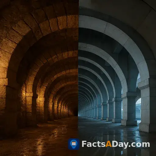 在巴黎街道深处,古老的石灰石采石场利用了精密的楔块拱。这些工程技术反映了现代桥梁建设中的结构完整性和承重设计。